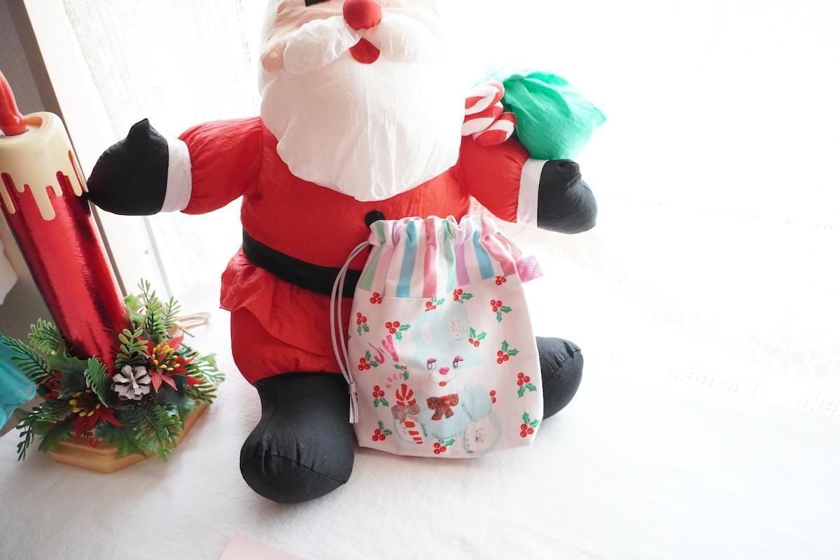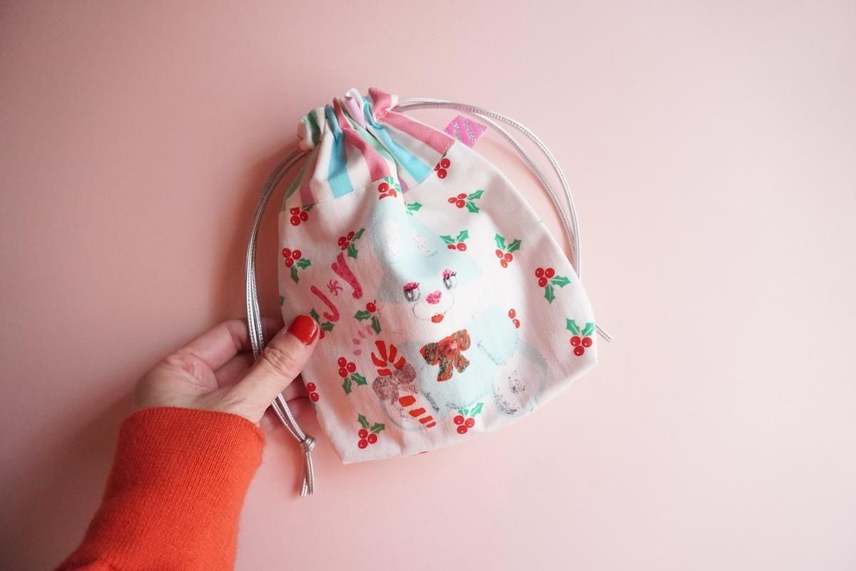 今だけの特別なクリスマス気分を盛り上げてくれるデザインの巾着です。