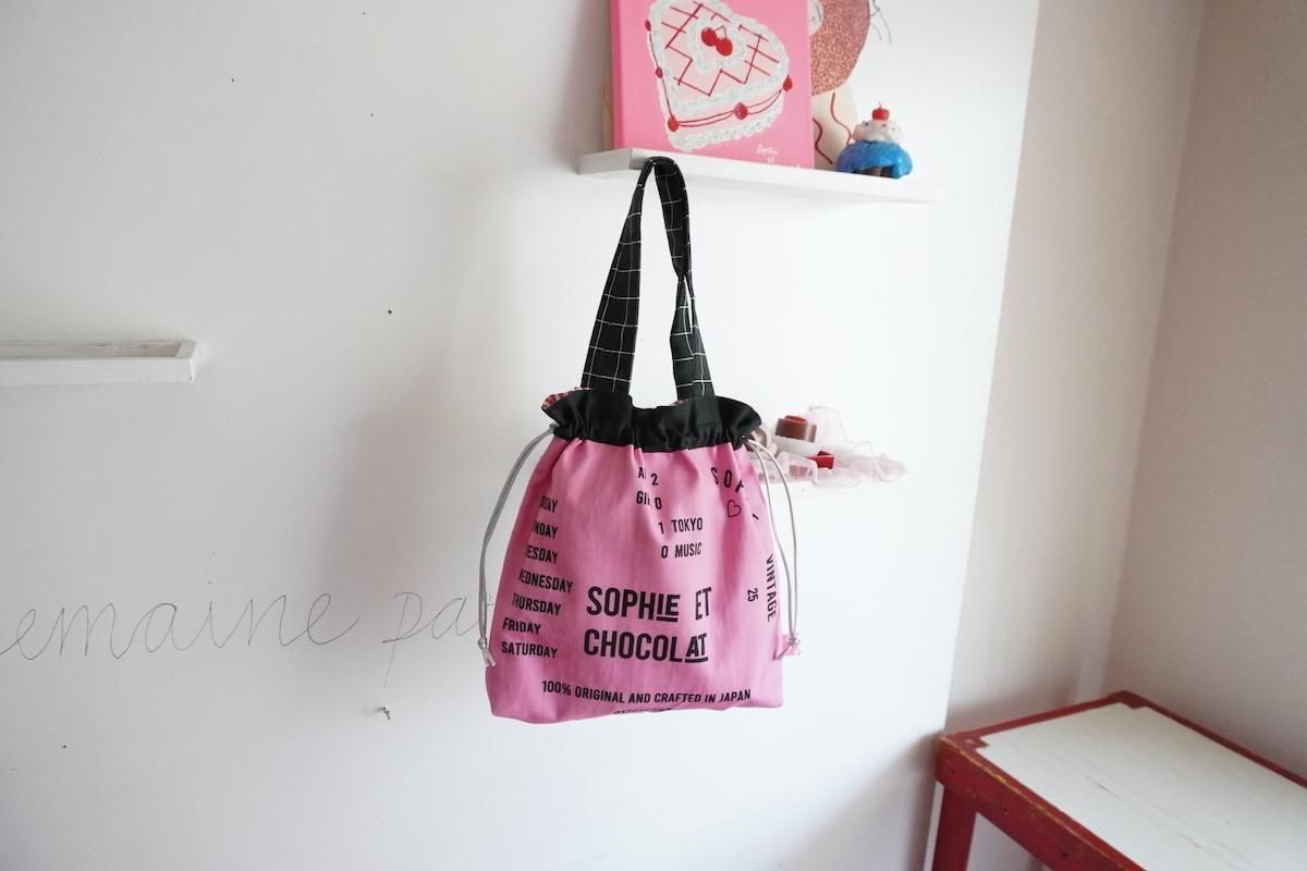 「Every day Sophie」がテーマのオリジナルの巾着バッグ。